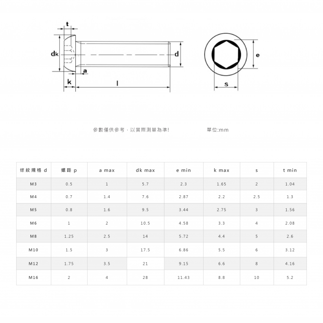 內六角圓頭螺絲
