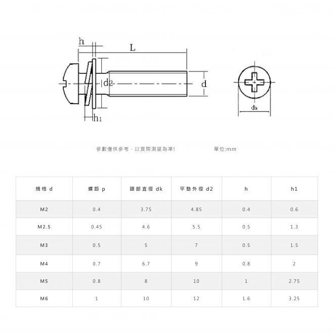 Phillips Round Head Combination Screws